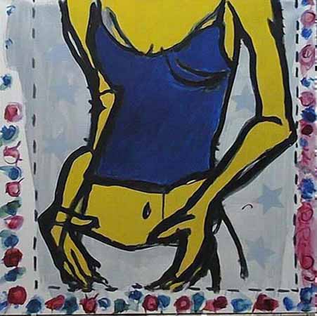 Torso y peto azul 1999. Acrílico/tela, 70x70 cm.