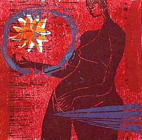 La artista formada en la Escuela de Arte de la Universidad Católica nos sorprende con su manejo del color. Hace algún tiempo su examen de grado de la especialidad de Grabado, fue en un sobrio y depurado blanco-negro. Esta vez sus xilografías son de colores saturados y grafías definidas y se refieren a un tema fundamental del ser femenino, como la donación y la germinación. Usa la técnica de la estampación a partir de una imagen devastada en un taco de madera, xilografía. Es estampado ya sea como versión única o combinando varios de ellos. Los tacos son re-usados en diferentes contextos y colores, con lo que se logra una interesante unidad y una lograda diversidad en la muestra.